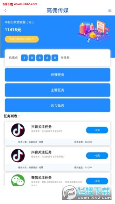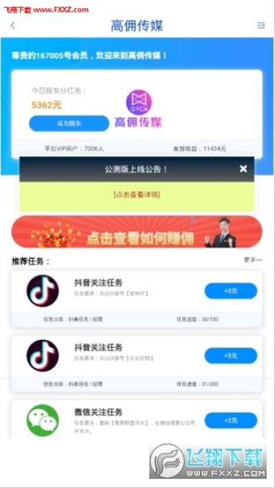 高佣传媒赚钱app是一款全新上线的新媒体赚钱应用服务平台,这款软件能够更好的帮助用户在空闲的时间赚钱佣金,实习生免费,每天可领2条任务,主管可领4条任务,经理可领8条任务,赶快前来高佣传媒赚钱吧!