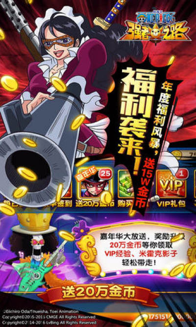 航海王强者之路果盘版是一款根据海贼王改编的手游,采用了经典的策略玩法,丰富的剧情内容,游戏玩法简单上手极快!上线就送vip福利礼包哦!快来下载吧!