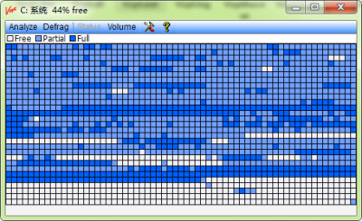 进 入软件的主界面,我们可以看见界面上方是菜单栏,包括:文件File、磁盘Dirve、参数设置Preferences、 结构Status、工具Tools、帮助Help六个功能,同时还可以看见目前你的硬盘的使用状态和碎片情况,这些信息将帮助你判断是否应该进行磁盘整理了。