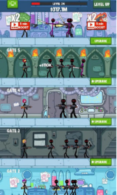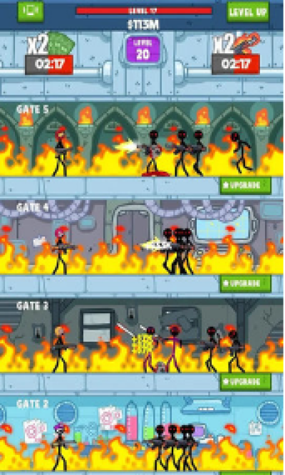 这里拥有50多种不同的角色以及强力的武器可以武装你的火柴人大兵;
