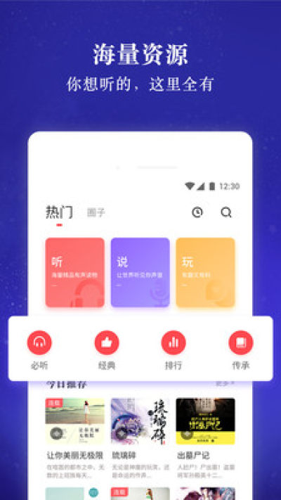 听说很好玩app是一款有声阅读软件,各位用户可以在这里听书,听广播,还有很多有声节目等等,你想知道的这里都有哦,在听说很好玩app上有专属的圈子,用户可以在线跟其他用户交流等等!