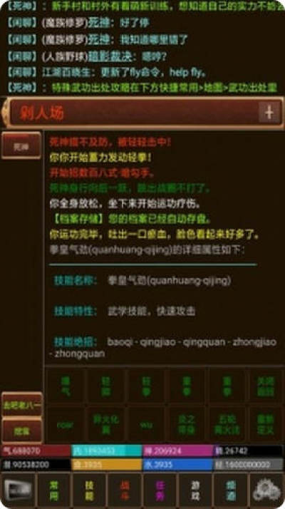 侠缘mud手游安卓版是一款文字叙述的玄幻战斗的游戏,这款游戏没有着任何的画面是一款纯文字的角色扮演游戏,但是游戏中各种的东西包括游戏装备的属性的介绍都是非常细腻的,而且这款游戏不需要任何的操作玩家在游戏中输入指令即可完成各种的操作,而且玩家在战斗时也是文字叙述的方法,玩家可以感受着不同修仙游戏的乐趣。