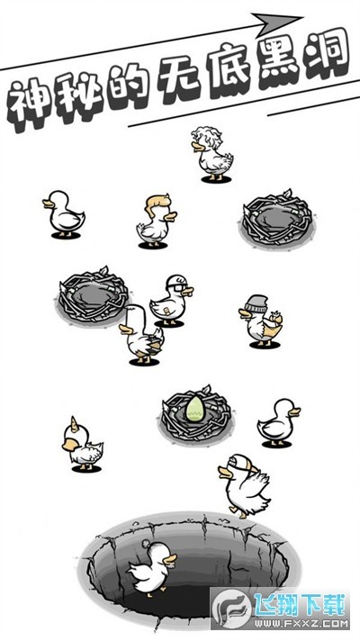 点击屏幕孵化出新的鸭子,观察它们的形态和特征,随着孵化次数增多,鸭子的变异也会增加,尽情探索各种奇异的鸭子形态,将鸭子投入洞穴中,看看它们会有怎样的反应和变化。