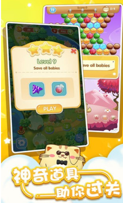 5、使用各种神奇的道具助你解决所有的难题,它们能够消除更多的气泡。