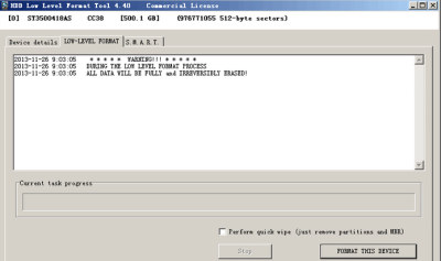使用方法很简单:选择要低格的设备,点击Continue继续,再点击FORMAT THIS DEVICE低格即可 。