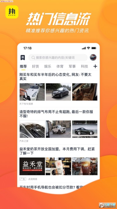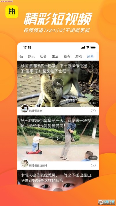 ● 实时送上热点时事,实现热点和兴趣阅读两不误!还有网罗各类精彩视频,新鲜段子、热门时事、搞笑短剧、娱乐新闻,你想看的这里都有!