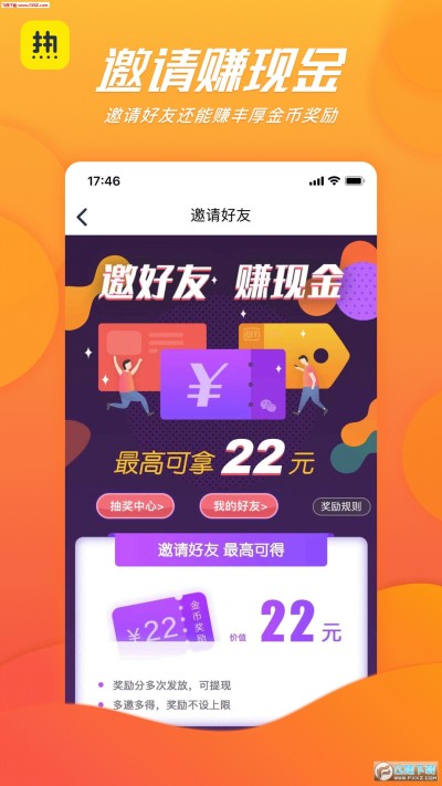 ● 邀请好友有惊喜,万元金币享不停,邀请好友最高可赚21元