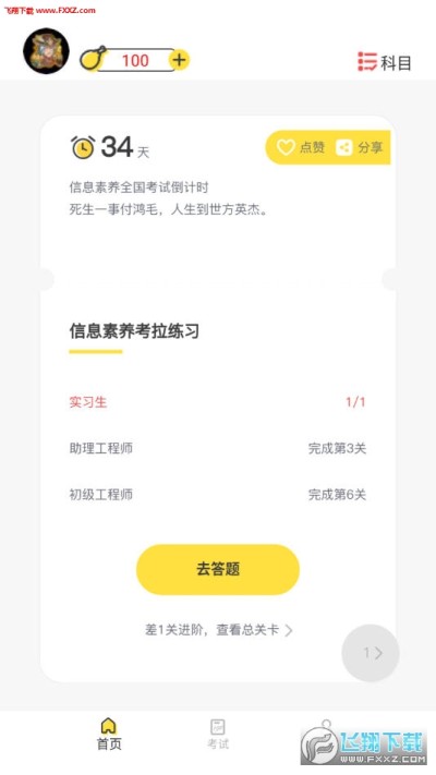 更新内容: 1, 优化loading慢的问题; 2, 优化鸡汤分享文案读取当前科目的问题; 3, UI细节优化; 4, 选答案后跳转下一题从3秒改为1秒; 5, 优化答题界面卡的问题.