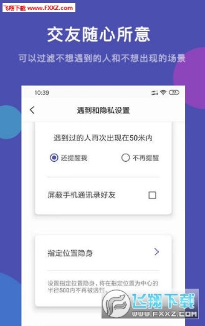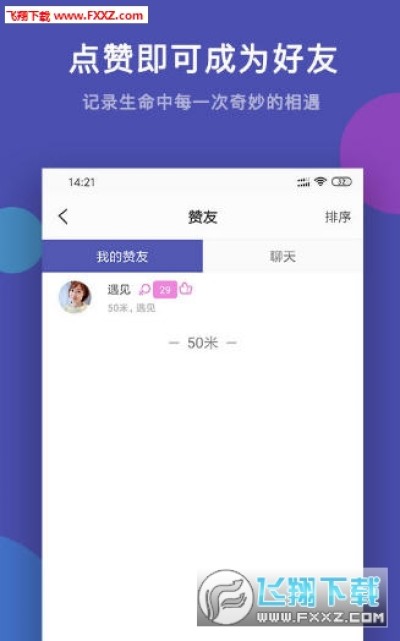 50米交友app手机版下载是一款非常好玩的线上交友软件平台,用户在手机上就可以轻松的获得很多的好友,就在自己的周边50米的范围内,后台就会监控到周边的玩家,感兴趣的用户随时都可以在手机上安装使用,让用户在后台快速的交友,感兴趣的用户快来安装体验吧。