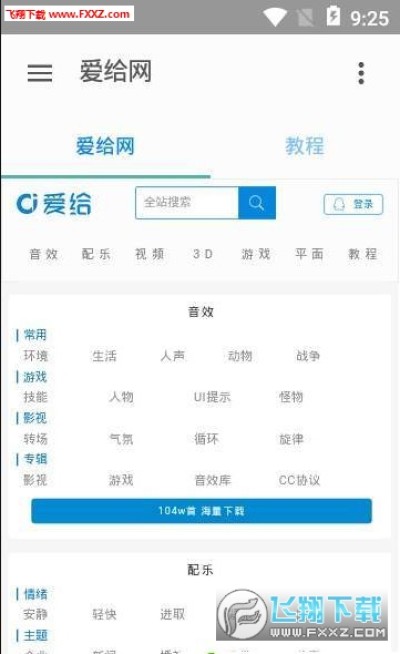 爱给网一款可以寻找音效、配乐、平面等素材和学习教程的app,在这里你可以通过关键词搜索来寻找素材,也能通过网站给的分类进行查找,平台上素材是很齐全的,如果你不会使用,这里还提供各种操作和学习教程,保证大家可以轻松掌握制作知识!