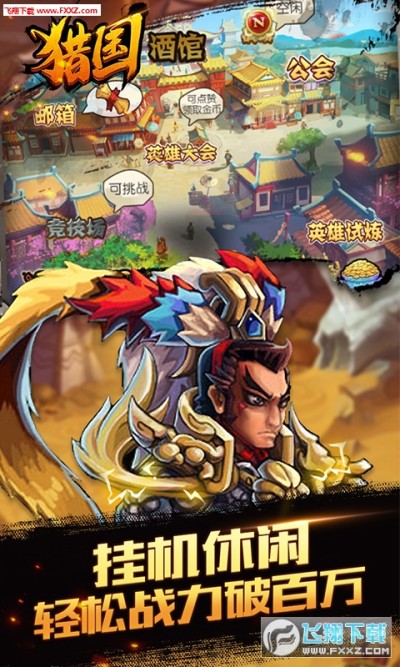 《猎国》是一款放置类三国手机游戏,挂机就送紫将,经验,银币等大量奖励。 百余名武将羁绊任意搭配选择, 多名英雄任选同时登场战斗搭配属于自己的最强阵容。