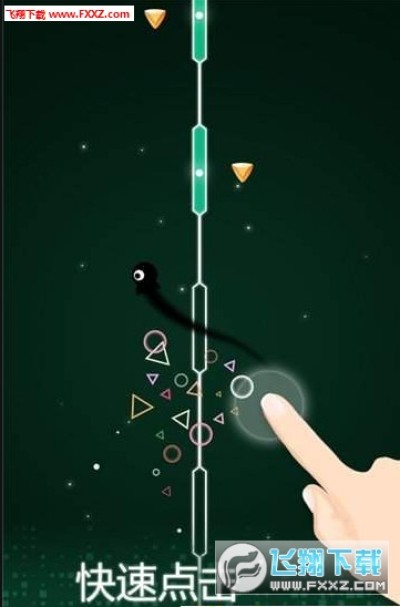 感受音乐的节奏点,轻击屏幕操作光点的移动轨迹;