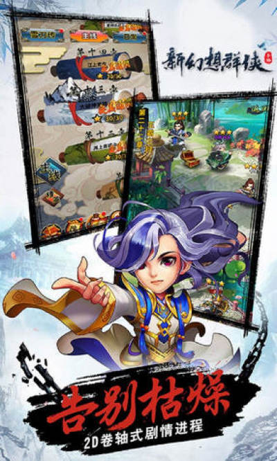 2019首款竞技回合制卡牌手游《新幻想群侠》,携【多重豪礼】全面来袭! 游戏主要讲述了大顺闯王之子李玄策隐瞒身份混迹江湖,回归大顺后北伐羌莽、南征大煌,后一统天下建立大华王朝的丰功伟业。游戏中南煌、中顺、羌莽、江湖四大势力分立,数百位英雄辈出,千种组合搭配,在浓郁的武侠风包裹下,关于庙堂、关于江湖,你将作何抉择?