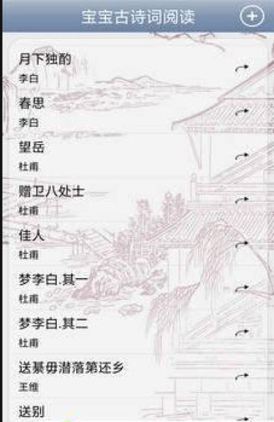 宝宝古诗词阅读一款帮助孩子更好学习古诗词的app,诗词文化是我国宝贵的精神财富,平台为大家提供了各类型的诗词,都是很经典的,每首诗还会有详细的注解和译文,家长可以根据这个为孩子讲解,让他们能够深入了解诗词的魅力!