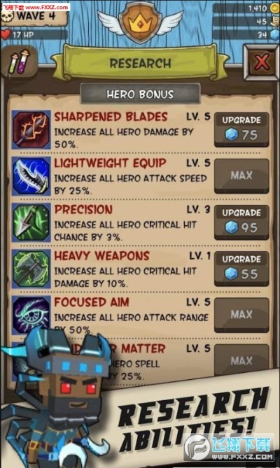 3、通过消灭敌人来获取更多资源,提升每一个英雄的基础属性。