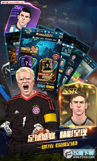 荣耀足球至尊版手游是一款足球为题材的策略卡牌类手游,游戏里汇聚了世界各国的巨星,玩家可以收集角色卡牌,打造属于自己的球队,创建球队就以获得超级vip,免费获得海量的钻石和欧元,率领自己的梦之队获得冠军吧!