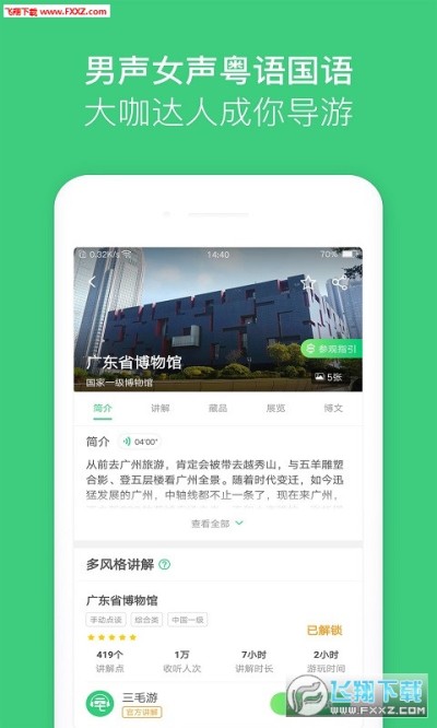 全中文语音详细介绍:覆盖全球10000+景区和博物馆的智能中文自助导览解说,全球旅行文化内容知识平台。已为全球5000万华人旅行及文化爱好者提供了手机自助导览和博物馆文化讲解服务;