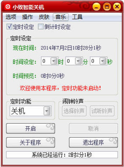 小败智能关机是一款绿色小巧、功能非常实用的简易定时关机软件,它能根据用户设置好的时间,到点了自动关机,能有效节约电力资源,对于笔记本用户来说,这是一个非常好的省电帮手。