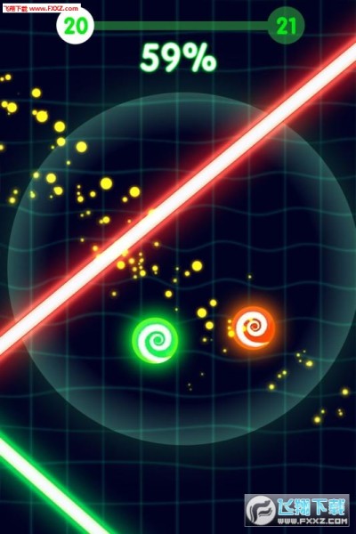 1、球球与激光联盟游戏自带背景音乐,听着有趣的bgm不停旋转移动球球。