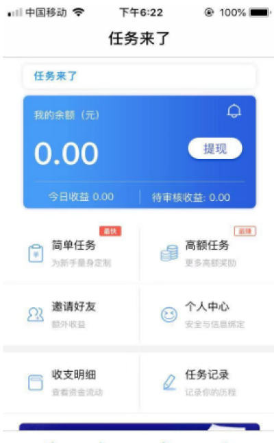 任务来了app是款相当方便快捷的手机赚钱任务软件,通过我们的日常下载使用各位朋友们就能在最短时间内获取到我们想要的小任务。比如读书或者点击阅读都能赚到属于自己的佣金,想要体验软件的朋友不妨下载试试不会让大家失望的