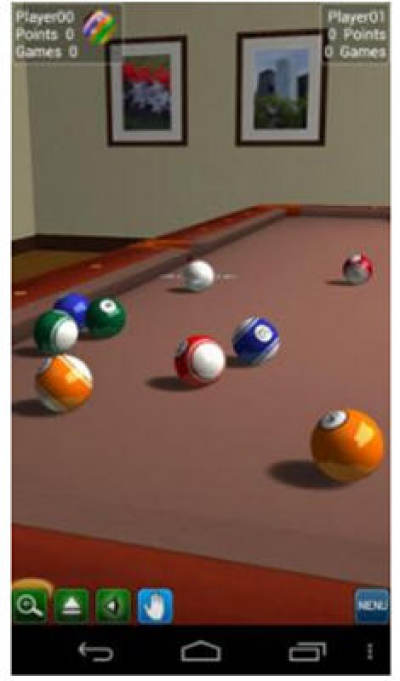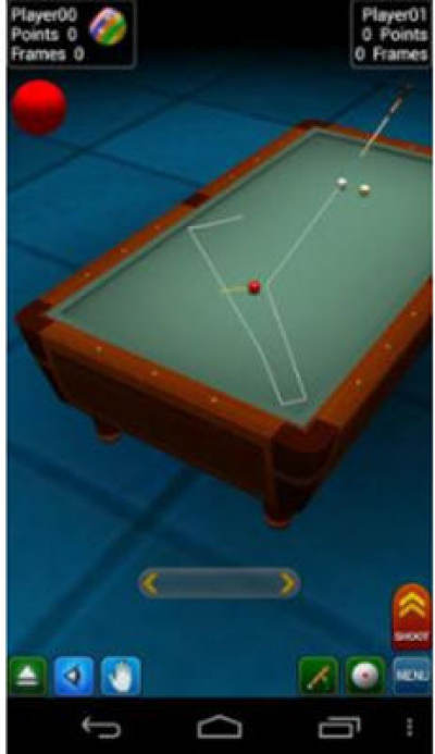 游戏画面效果和操作方式均有可圈可点之处,同时包括操作时将球杆向后拉出一定的距离后就出现代表力度和方向的轨迹线,球杆与击球点间的距离代表力度,还可同时可调击球角度和击球点。