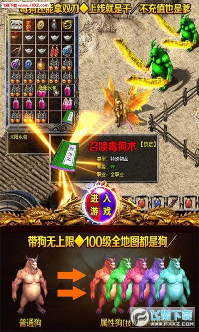 2、神兵利器、极品装备轻松获得,野外BOSS、副本爆率极高;