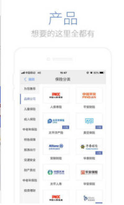 1、全面的保险产品内容都有所涵盖自由搜索;