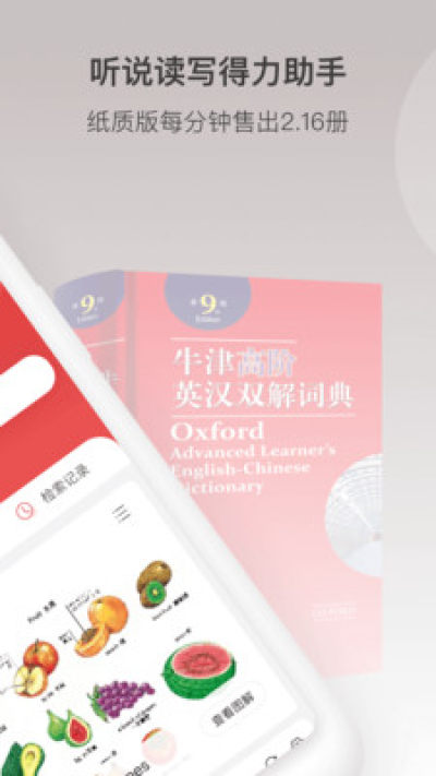 《牛津高阶英汉双解词典》是一部公认的权威英语学习词典,出版后几经修订,畅销不衰,深受全球读者欢迎。如今,牛津高阶英汉双解词典(第9版)APP正式上线。《牛津高阶英汉双解词典》(第9版)收录185000余条单词、短语、释义。相比第8版,累计进行6000余项修订,增收700多条新词新义。