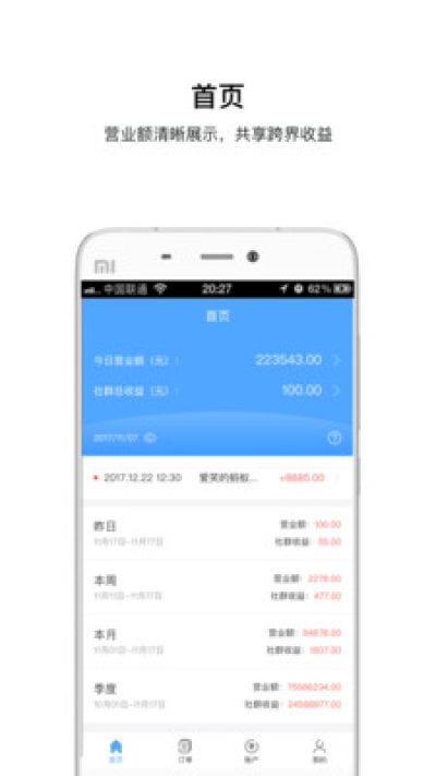 【信息查看】分时段、自定义查看营业额、社群收益,操作体验简易高效。