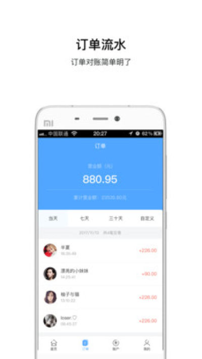 【订单管理】流畅的订单处理体验,可查看当天、七天、三十天以及自定义订单情况。