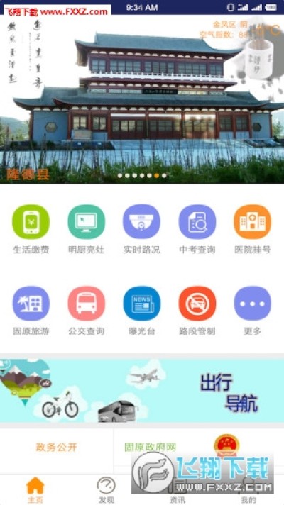 i固原一点通APP设固原政务服务、网上预约挂号、公共生活缴费、五险一金查询四大板块。最大亮点是与固原政务服务的全面打通,用户可以通过“固原通”进行固原地区线上政务服务在线申报。随着固原市163政务服务新模式的深入建设,“固原通”将承担起面向市民进行服务的重要任务,目前,已经开通了法人事项902项、自然人581项与19项便民审批事项。