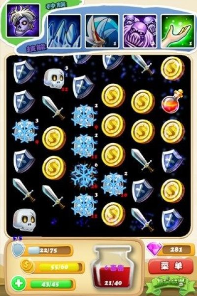 初入游戏就可以看到很舒服的卡通风格,虽然元素简单,但是可以看出来作者在制作时并没有偷工减料,按压小图标时都会有非常精细的动画效果,技能效果也是一大亮点。该作在消除的游戏方式中巧妙的融入了rpg的元素,角色,种族,天赋,职业,技能,更有很多种属性可以在游戏中发挥巨大的作用。总体来说相当出彩。