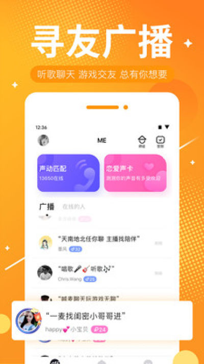 【声动匹配】点击一键匹配陌生人,快速进入聊天。再也不怕孤单时无人陪伴啦