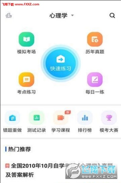 有模拟考场、历年真题练习、快速练习、考点练习、考试押题、做题记录等多种学习与做题模式、丰富多样化的陪你一起考自考法律。