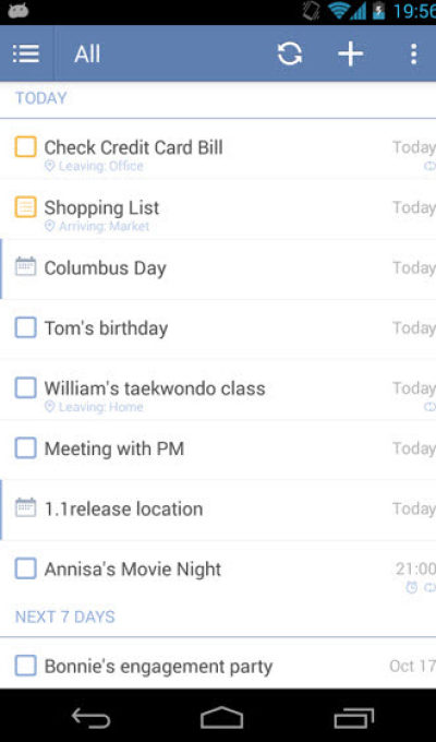 这是我用过最好的任务提醒应用。Android版与在线版拥有同样的功能,让我能够更方便快捷的设置提醒,重复任务和分享任务列表。