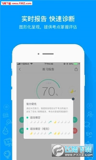 4、提供学情的实时的统计报告快速的诊断个人的学习的情况。