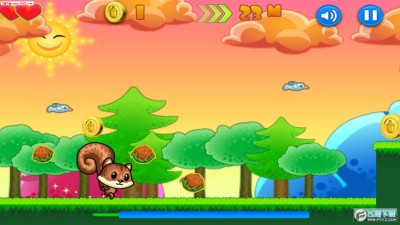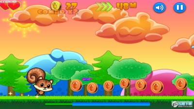 小松鼠自动奔跑,玩家控制获取各种道具,跳跃来躲避各种障碍;