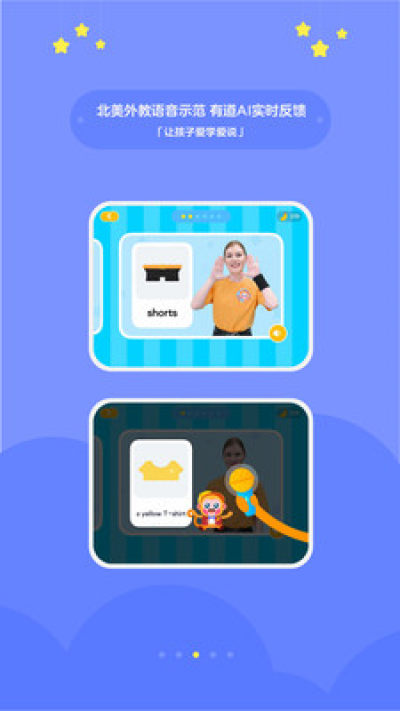 有道少儿英语app是网易有道旗下的儿童英语学习平台,通过智能化的AI系统,互动式、情景式等多种特点,培养孩子的学习兴趣,通过与老师的交流,从小培养语感,有需要的朋友们,赶快下载有道少儿英语app体验吧。