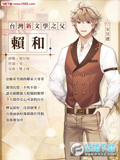 由唯数娱乐研发团队匠心打造,首款国人自制文豪养成手游。游戏的背景设立在1930年的台湾,玩家将会化身成为一名大学生,因为一次意外进入到神秘的时光屋中,在这里帮助书灵们寻找遗忘的记忆碎片的同时,还将会遇到各种不同的二次元男主。