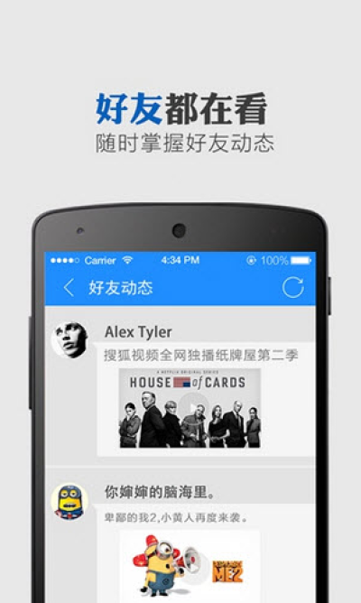 关注好友:与好友分享视频,查看好友动态,和好友一起看视频评新闻