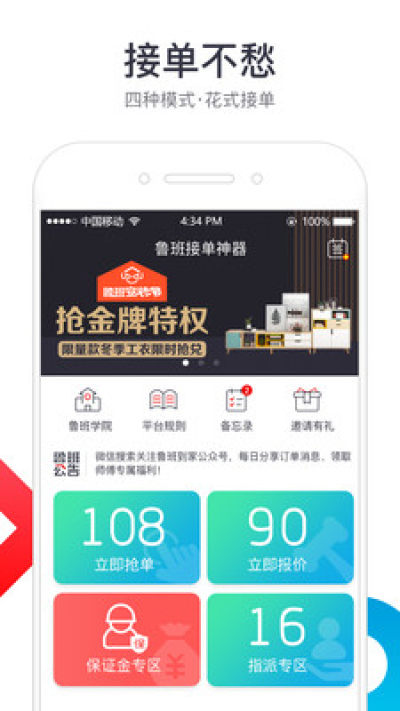 鲁班到家师傅版app是一款给鲁班到家平台师傅接单用的app,这款软件可以为各位师傅提供丰富的订单,同时也有免费的入驻平台,平台为你做担保交易,值得信赖哦!