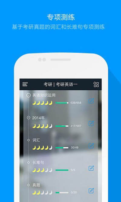 1.专项练习突破短板:考研英语专门针对复习两大难关词汇和长难句命制题目,以题代背,以题促记,在练习中熟记单词吃透长难句,考研政治将500余个大纲考点细分为系统性的知识点,利于更有针对性地复习薄弱考点。