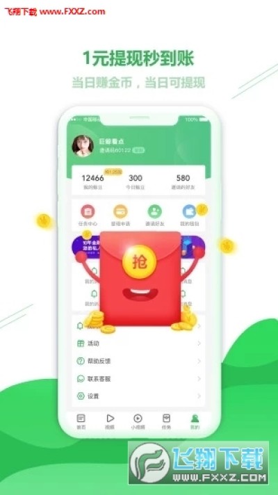 红包金币不设限制 — 刷资讯、刷视频、做任务 ,邀请好友统统都给钱,收徒越多每日奖励越高。