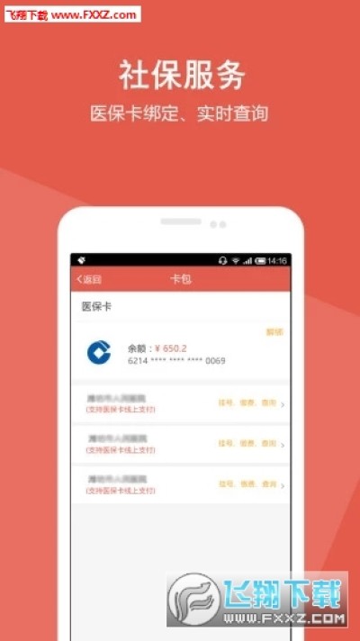 1、绑定实体医保卡,支付、查询、在线缴费;
