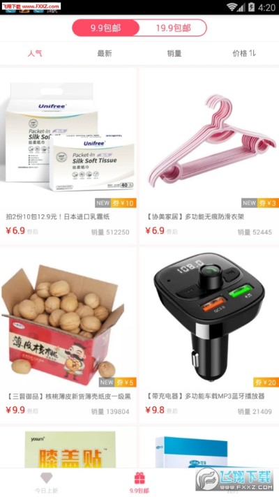3、9.9元包邮:每日每小时筛选小于9.9元的超值商品,让您感觉超值!