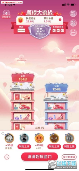 1.从第一等级开始搭楼,和你的对手比拼,只要在规定的时间内胜利就能获得红包;