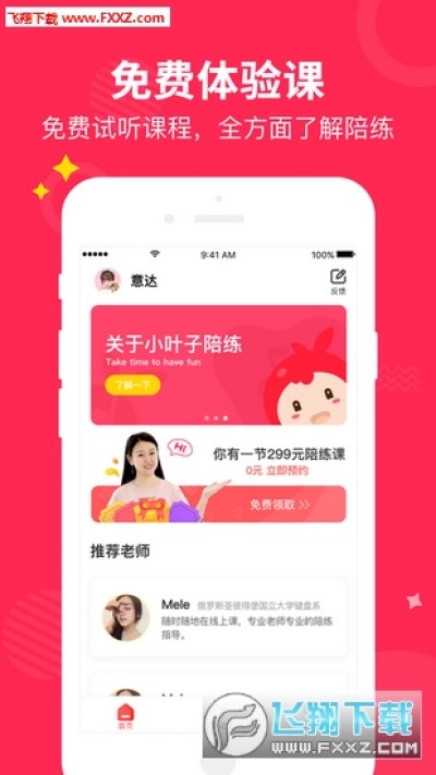 4)打开小叶子陪练APP,一键预约,随时上课。