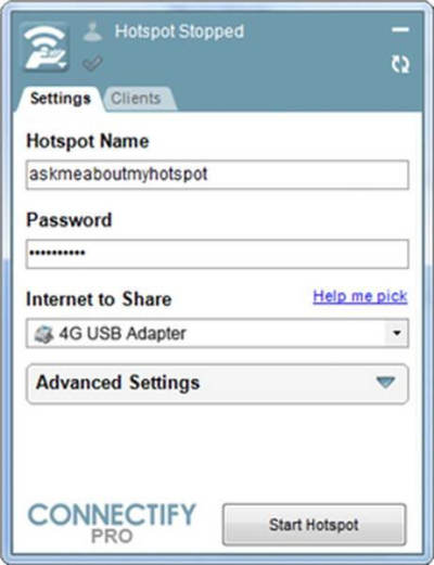 Connectify热点与亲,你可以把你的计算机变成一个真正的Wi-Fi热点的股份,与任何其他单一的3G/4G连接Wi-Fi功能的设备。你的价值最大化您的3G/4G同时在线卡到你所有的设备!