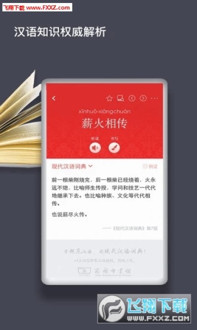 《现代汉语词典》APP由商务印书馆研制出版,完整收录《现代汉语词典》(第7版)原书内容,支持数字版、纸版界面一键切换对照阅读,支持手写、语音、摄像头多种输入方式,提供著名播音员李瑞英标准词语播读,以及全文智能查询、智能问答助手、词汇分类学习、日识一词个性化学习、相关词拓展、同义词辨析、易错词闯关等增值服务,有助于用户更深入地学习和掌握汉语词汇。