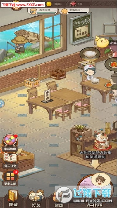 师徒二人经营着一家幸福厨房,徒弟游山玩水收集菜谱,师傅兢兢业业烹饪佳肴。解锁各地特色美食招待客人,赚取金币,各种风格装饰任你选择。